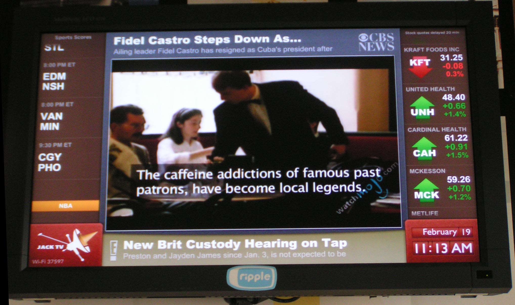 RippleTV was the company providing the TVs for Jack in the Box. TargetCast acquired Ripple in September 2009. It's unclear what role, if any, the acquisition played in souring the deal with Jack in the Box.