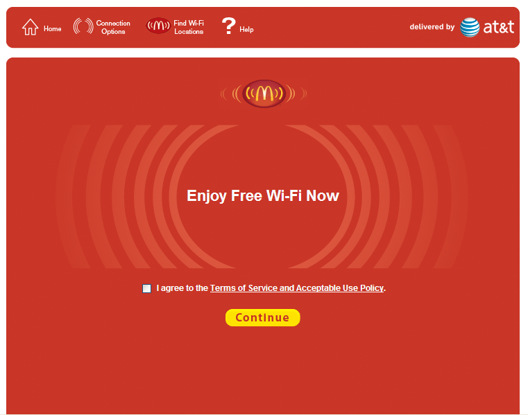 Once connected, call up any web page. Instead of visiting that page, your web browser pulls up the McDonald's Wi-Fi welcome page.