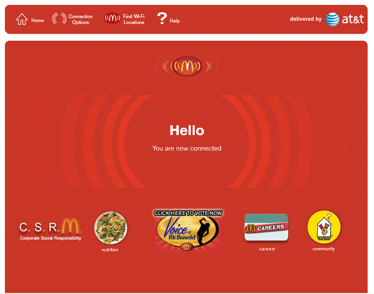 - Finally, McDonald's Wi-Fi greets you and welcomes you to the Internet on the next page.