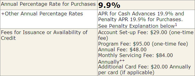 Take a look at the Schumer's Box and fine print for the current worst-offender, First Premier MasterCard. Here are the kinds of fees you'll find: