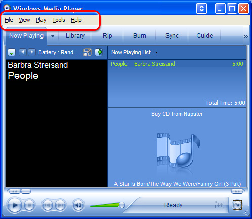 The Windows Media Player window can take on many shapes and forms. Unfortunately, only one of those forms has the menu bar in plain sight.